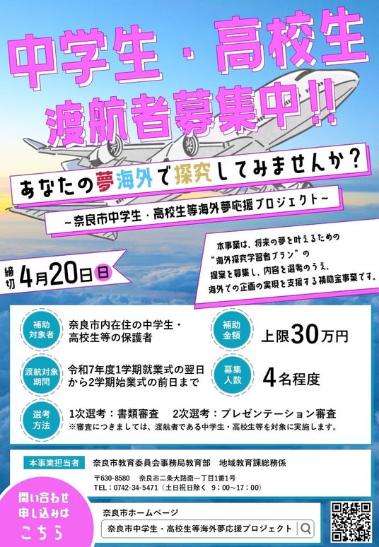 Mail:chiikikyouiku@city.nara.lg.jpTel :0742-34-5471(平日9時から17時まで)