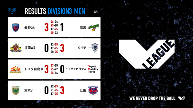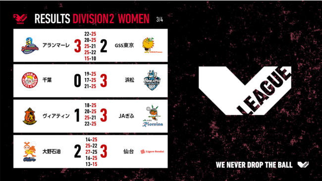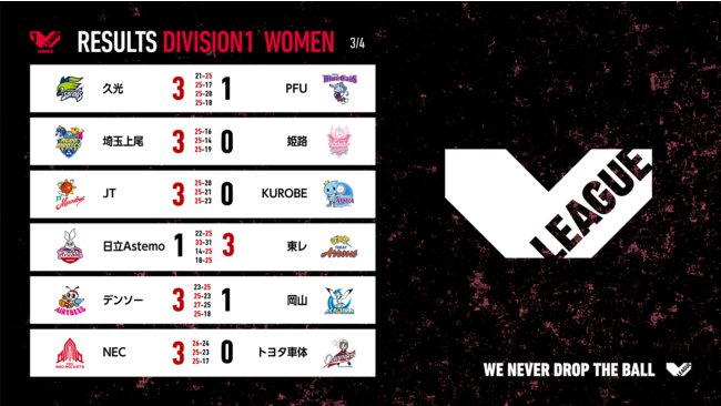 バレーボール国内最高峰リーグ V.LEAGUE【3月4日の試合結果】