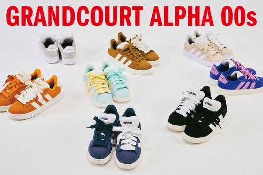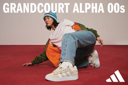 今回発売する『GRANDCOURT ALPHA 00s』は、アディダス オリジナルス『CAMPUS』からインスパイアされた、2000年代初頭のストリートスタイルを彷彿とさせるファットなシルエット。存在感のあるスリーストライプスとシューレースが特徴で、どんなスタイリングもアップグレードしてくれます。全8カラーで、スポーツデポ・アルペン限定で 9,350 円(税込)にて販売いたします。