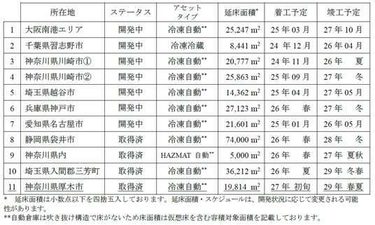 ■霞ヶ関キャピタル物流施設開発予定物件一覧