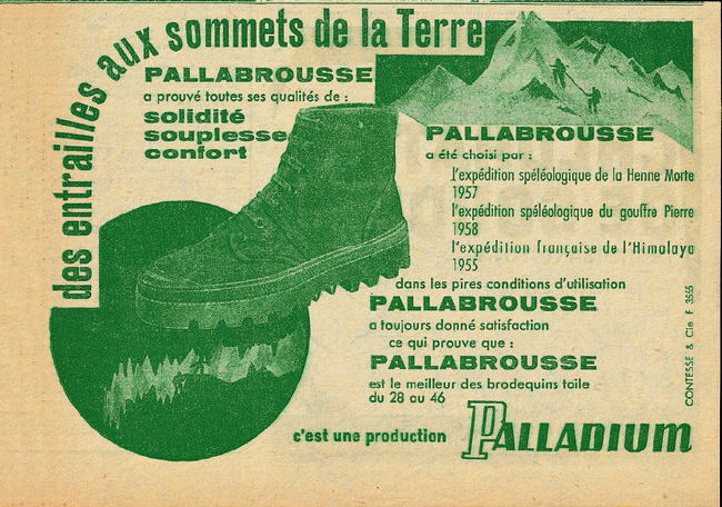 パラディウムは1947年にフランス軍のリクエストを受け、ラバーソールブーツの製造をスタート。このブーツこそがパラディウムのオリジン、「PALLABROUSSE」です。耐久性に優れながらも軽量で、さらに速乾性にも優れるそのキャンバスブーツは、荒々しいことで有名フランスの外国人部隊が着用し、高い評価を受けました。