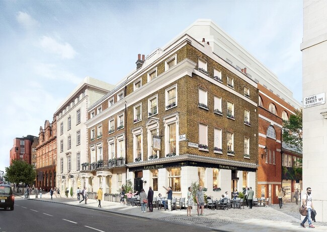 計画建物を含む本プロジェクトは、英国大手設計事務所であるホプキンス・アーキテクト社によってデザインされます。メイフェア地区の歴史的な特徴を強化するため、既存建造物のファサードを保存し、多くの人に愛され続けてきた100年以上の歴史をもつパブの改装を含む地域のランドマークを保持しながら、より緑豊かで快適かつ歩行者に優しい公共空間を整備して参ります。