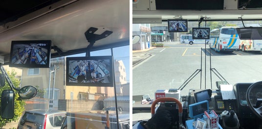 これまで鏡で確認していた車内が、取り付けたカメラ映像をディスプレーに映し出すことで、車内の死角がほぼゼロになったうえ、お客様の動きをAI機能が感知し、乗務担当社員に注意を促す。