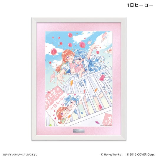 「hololive × HoneyWorks」にて展開されている11種のコンセプトアートを使用した複製原画です。ネームプレートには曲名とプロジェクト名があしらわれており、A3サイズのイラストを存分に楽しめるアイテムとなっております。
