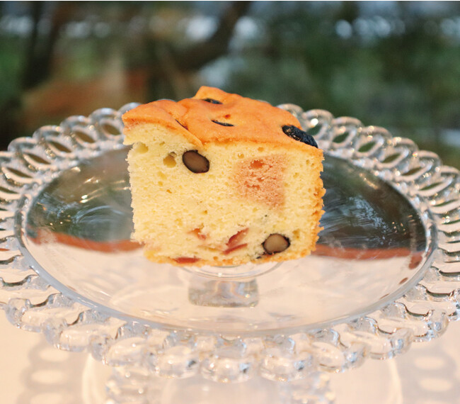 生地には神戸ワインでマリネした“シャキシャキ”の淡路玉葱と、神戸ワインに漬けた“ほくっ”とした丹波黒豆を合わせ焼き上げました。また、神戸ワインを生地に練り込みマーブル模様の断面に仕上げました。シェフこだわりの兵庫バターケーキは、紅茶やブラックコーヒーとの相性も抜群です。店内でのご飲食はもちろん、敬老の日・帰省の手土産など様々なシーンで喜ばれるホールもご用意しました。ぜひご賞味ください。