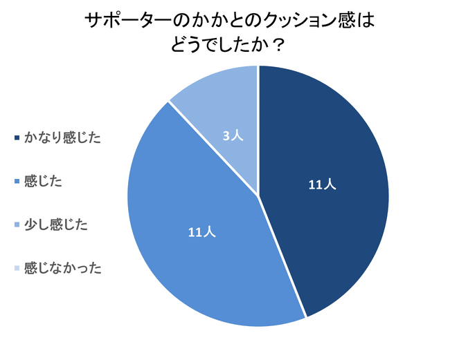 →「ヒール&アーチサポーター」を装着することで、25名の方が安心感や安定感を得られていた。
