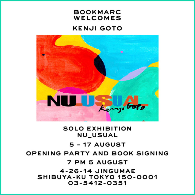 ニューヨーク発ファッションブランド「マーク ジェイコブス」が手掛けるブックストア『BOOKMARC(ブックマーク)』にて、米THRASHER MAGAZINEの“CANVAS”ページに日本人では3人目として作品が掲載され、国内外のスケートボードブランドへ作品提供でも知られるKenji Gotoの初作品集の出版を記念して個展を開催します。初日8/5(金)の19時からオープニング・パーティーとサイン会もおこないます。この作品集はBOOKMARCの完全先行発売。皆様のご来店お待ちしております。