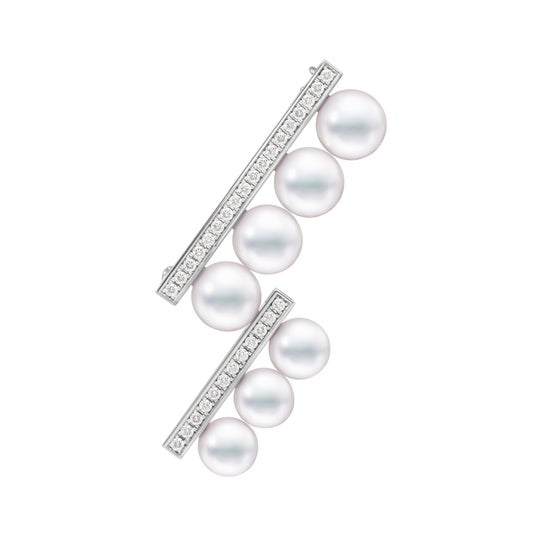 男性受賞者贈呈 バランス ステップ ダイヤモンド パヴェ ブローチ[WG,あこや真珠,ダイヤモンド]