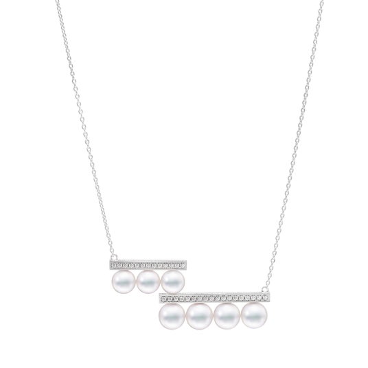 女性受賞者贈呈 バランス ステップ ダイヤモンド パヴェ ネックレス[WG,あこや真珠,ダイヤモンド]