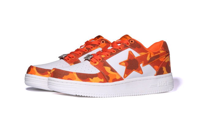 ウェアやアクセサリーに加え、BAPE STA™️のスニーカーをヘロン・プレストンのシグネチャーであるオレンジで再現しました。プレミアムレザーを使用し、キャンバス地に同系色のBAPE(R) CAMOでアクセントを加えました。それぞれのスニーカーには、BAPE(R)とヘロン・プレストンのラベルがミスマッチするようにデザインされています。