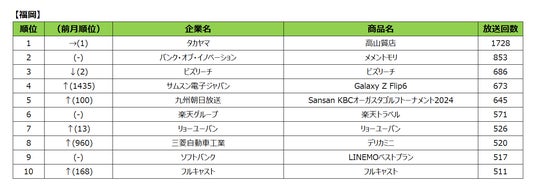 2024年8月度 エリア別テレビCM放送回数ランキング