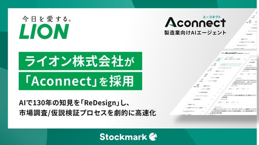 ストックマーク株式会社(本社:東京都港区、以下:当社)が提供する製造業向けAIエージェント「Aconnect」は、ライオン株式会社(本社:東京都台東区、以下:ライオン)に採用頂いたことをお知らせいたします。