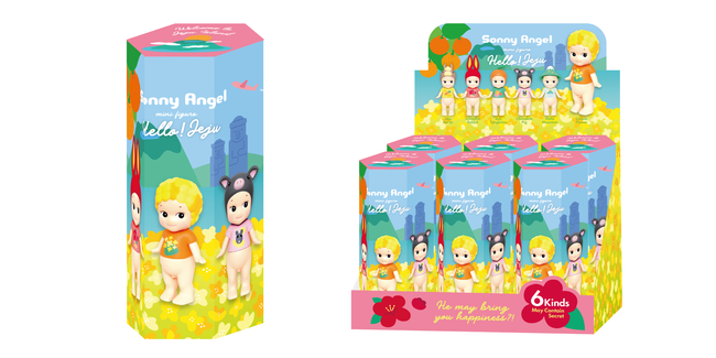 チェジュ島の大自然や美しい景色が広がるパッケージデザイン。フィギュアは6種類+シークレット2種類の全8種類。1アソートボックス6個入りです。どのソニーエンジェルに出会えるかは、箱を開けてからのお楽しみです。
