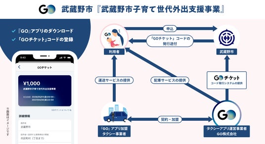 No.1※1タクシーアプリ『GO』を展開するGO株式会社(本社:東京都港区、代表取締役社長:中島 宏)は、国内初となるデジタルタクシーチケット「GOチケット」を2023年より展開しています。「GOチケット」は、デジタルの利便性を活かし、ビジネスシーンはもとより個人間ギフトなど様々なシーンで利用が加速する中、全国の自治体でも住民の移動サポートツールとして選ばれており、この度新たに東京都武蔵野市の「子育て世代外出支援事業(ムーベビ)」に採択されました。妊産婦支援としてのデジタルタクシーチケット活用は東京都内初となり、2026年4月1日(水)より申請受付を開始予定です。