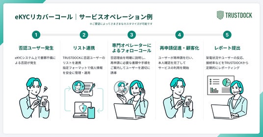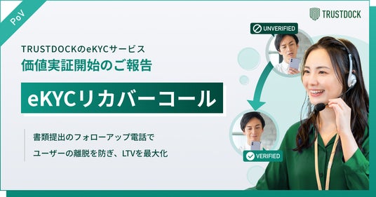 株式会社TRUSTDOCK(東京都中央区、代表取締役:千葉孝浩)は、eKYC(オンライン本人確認)サービス「TRUSTDOCK」より、本人確認業務において、書類不備により審査が否認となったユーザーや審査プロセスで途中離脱したユーザーに電話連絡を行うサービス「eKYCリカバーコール」の価値実証を開始いたしました。