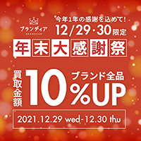 ブランディアでは、12月29日(木)・30日(金)に一部店舗限定で、買取10%UPキャンペーン(上限額5万円)を実施しています。お手持ちアイテムをお得に見直すチャンスをぜひご活用ください。