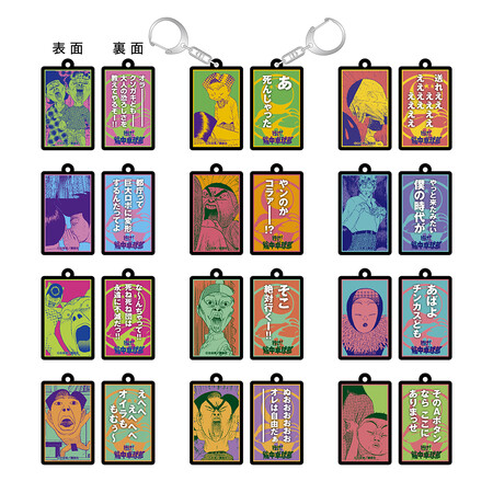 『行け!稲中卓球部』の珠玉の名言集を12種類のアクリルキーホルダーとして一挙リリース!各キャラクターたちの名場面、傑作ギャグ、印象深いシーンをコマとセリフの両面仕様で厳選!稲中らしいポップな色使いもかわいらしい!キミは全部覚えているかな?
