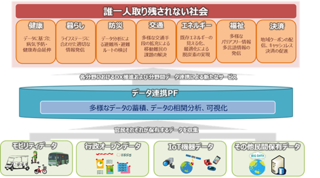 本取り組みでは、杉並区が2021年度に策定した新たな基本構想の実現を具体化するための総合計画等に掲げるデジタル技術を活用した区民サービスの向上に向けて、NTT東日本が提供するデータ連携PFを用いて、データ利活用の必要性・有効性を検証するとともに、情報連携の課題整理や社会実装に向けた必要な機能等の洗い出し等を共同で検討・検証してまいります。