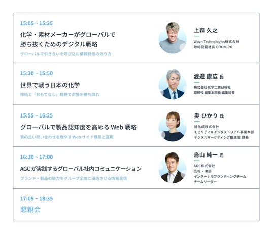 本カンファレンスでは、競争力強化が求められる日本の化学・素材メーカーがグローバルに向けて効率的かつスピーディに情報発信するためのブランディング・マーケティング手法についてご紹介します。