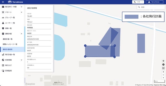- 飛行エリアの重複検知および他社UTMSとの調整による重複解消
