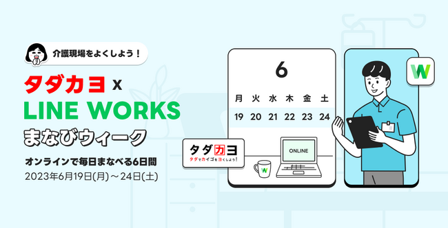 ビジネス現場のコミュニケーションツール「LINE WORKS」を提供するワークスモバイルジャパン株式会社(本社:東京都渋谷区、代表取締役社長:増田 隆一、以下 ワークスモバイルジャパン)は、介護事業所のIT活用を支援するNPO法人タダカヨ(所在地:東京都大田区、理事長:佐藤拡史、以下タダカヨ)と協同し、オンラインカンファレンス「タダカヨ × LINE WORKS まなびウィーク」を2023年6月19日(月)より6日間開催いたします。