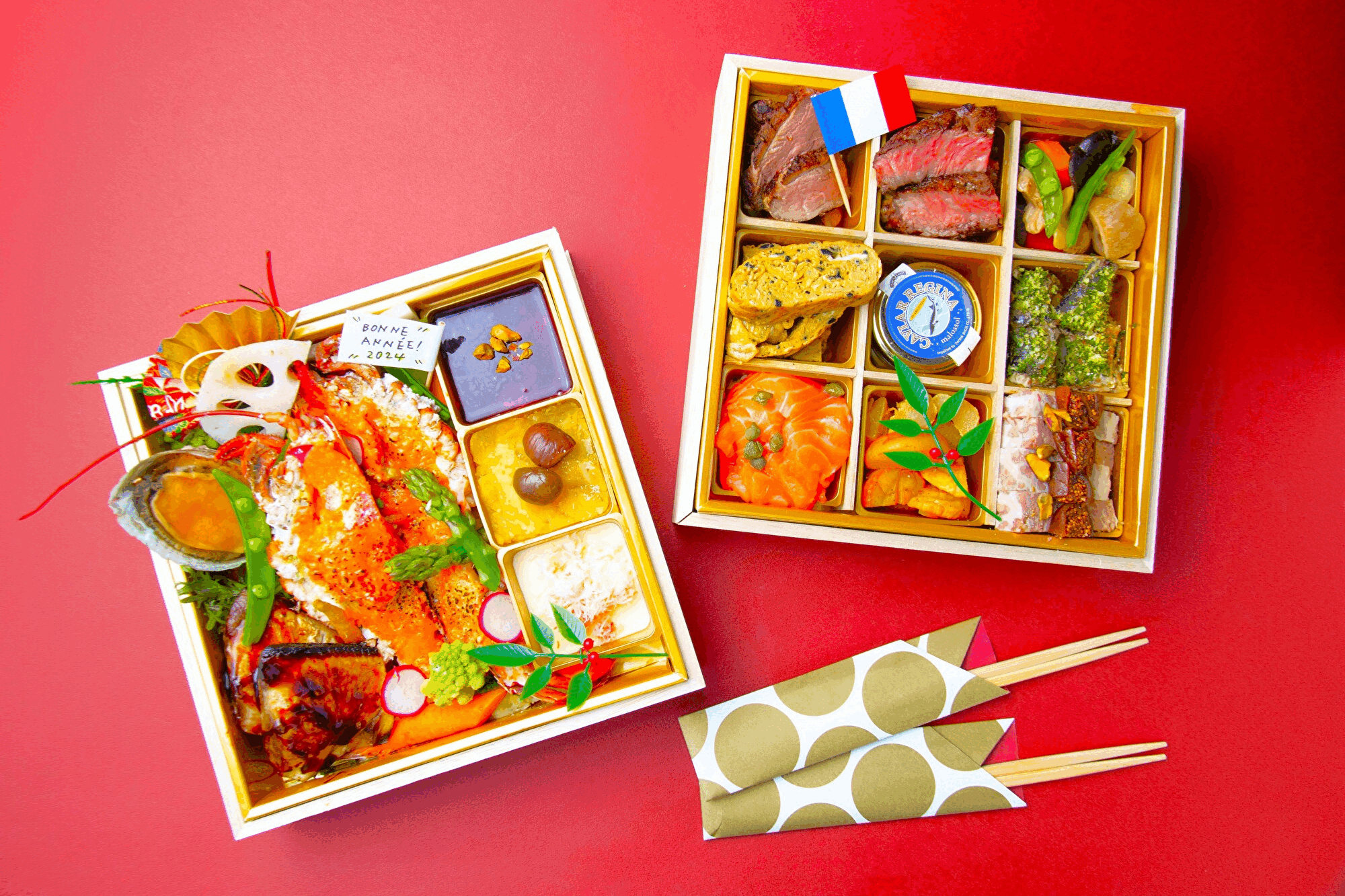 オマールエビやトリュフ、ズワイガニやキャヴィアなどの豪華食材を用いたビストロ風おせちは、無病息災、子孫繁栄の願いを込め、一つ一つシェフが心を込めてお作りしております。