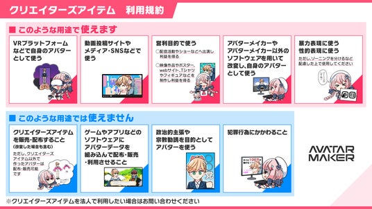 今まで公式アイテムとして多くの顔・髪型パーツや衣装などを増やしてまいりましたが、より自由で楽しいアバター制作の選択肢を増やすため、様々なクリエイターさんの作品とコラボしたアイテムの販売を開始いたします。