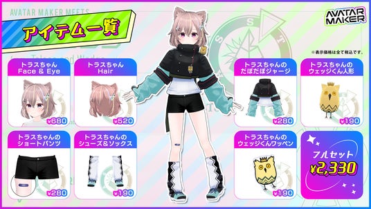 トラスちゃんの頭部パーツや衣装が登場!かわいいアバターがブラウザで簡単に制作可能に