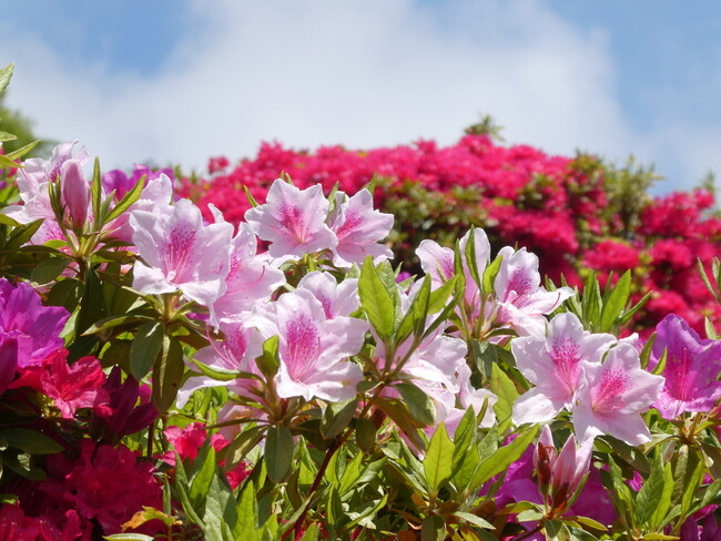 静岡県熱海市にある姫の沢公園(指定管理者:姫の沢公園パートナーズ、代表企業:伊豆箱根鉄道株式会社、構成企業:西武造園株式会社、株式会社時設計)では、4月下旬より約6万株のツツジの開花が進み、丘の下から上へと赤・ピンク・紫・白などの鮮やかな色に染め上げる光景が広がります。