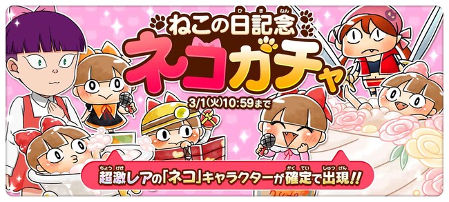 期間限定で超激レアの「ネコ」キャラクターが数多く登場する「ねこの日記念ネコガチャ」を開催いたします。