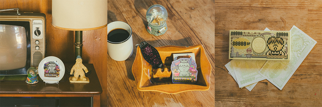 『MOTHER2』に登場するホテルに、もしも宿泊記念グッズがあったら…という設定でつくられた「町のおみやげシリーズ」。各町のホテル名と部屋番号が入ったデザインのキーリングとステッカーがセットになっています。ニューポークシティにはホテルがないため、キーリングのオモテ面には部屋番号のかわりに「P-009」と記し、ウラ面は、ポーキーのイラストが描かれています。防水加工をしたステッカーつきです。