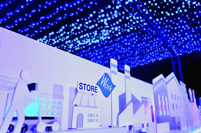 NECのエンタープライズ事業領域である銀行、店舗 、工場、空港、ホテル等を模した巨大からくり装置では、NECが人や生活の繋がり、止まらない社会の実現に向けて取り組んでいることをエモーショナルに表現しました。また、そこに広がる無数の星を表現した大規模なイルミネーションは、NECが皆さまと共に創っていく「街」の輝きや灯りをイメージし、NECのソリューションで、もっと、街を明るく、社会により煌めきを生み出していくという思いを込めました。