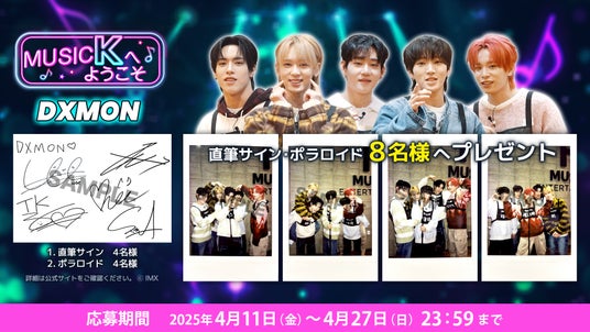 「Music Kへようこそ!」最新話更新を記念して、DXMONの直筆サインとポラロイドが抽選で8名様に当たる豪華プレゼント企画を本日18時より実施。Music Kの公式X、および公式サイトをご確認のうえ詳細をお待ちください。