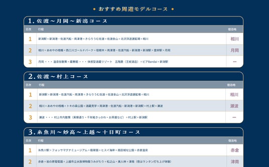 ・宿泊予約サイト内に新潟県特集ページを掲載し、「佐渡島の金山」の情報発信をはじめ、食や温泉など、佐渡を含めた県全体の秋冬の魅力及び県内周遊モデルコースを掲載します。