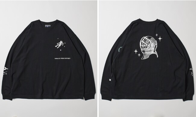 Tシャツなどのカットソーに描かれているグラフィックは、“Parallel World Odyssey”をテーマに別世界、宇宙といった遊び心あるグラフィックを映像ディレクター、アートディレクター田中 裕介が担当している。