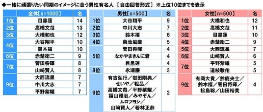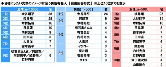 ◆目標にしたい先輩のイメージに合う男性有名人 男性回答1位「大谷翔平さん」、女性回答1位「櫻井翔さん」