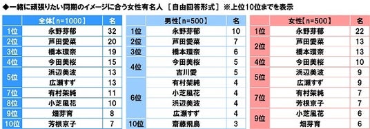 ◆一緒に頑張りたい同期のイメージに合う女性有名人