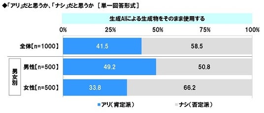 ≪生成AIによる生成物をそのまま使用する≫では、「アリ」は41.5%、「ナシ」は58.5%となりました。