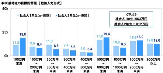 社会人2年生の30歳時点の目標貯蓄額 平均1012万円、昨年から26万円増加