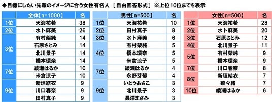 ◆目標にしたい先輩のイメージに合う女性有名人 男性回答・女性回答ともに1位「天海祐希さん」