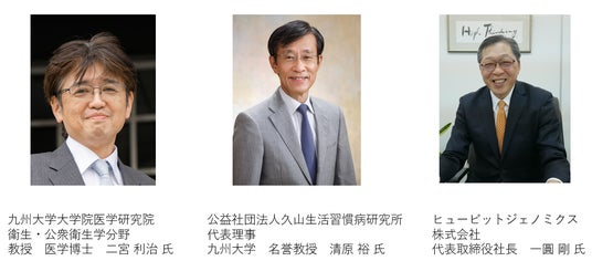 キューサイ株式会社(本社:福岡市中央区、代表取締役社長:佐伯 澄)は、個々人のエイジング(加齢)の変化に基づき適切なソリューションを提案する「エイジングに向き合う新サービス(仮)」の構築を目指しています。そこで当社は、国立大学法人九州大学大学院 医学研究院 衛生・公衆衛生学分野(所在地:福岡市西区、教授:二宮 利治)、公益社団法人久山生活習慣病研究所(所在地:福岡県糟屋郡、代表理事:清原 裕)、ヒュービットジェノミクス株式会社(所在地:東京都中央区、代表取締役社長:一圓 剛)の3社と共同研究を開始しました。本研究では、九州大学と久山生活習慣病研究所が連携して長年蓄積してきた健康診断データと生活習慣の情報を組み合わせることで将来のエイジング課題に繋がるエビデンス取得を目指します。