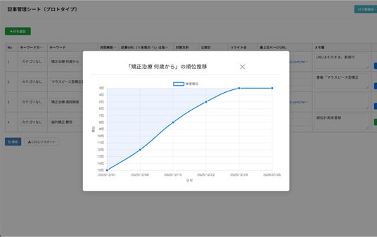 ~キーワードと記事URLを入力するだけで、順位データを自動取得して可視化!~