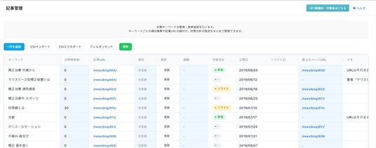 これまで、記事の順位管理はスプレッドシートなどの外部ツールで運用されるケースが多く、TACT SEOとの行き来に工数を要していました。さらに、管理ツールが分かれていることによる更新漏れや反映漏れといった運用ミスも、多くのマーケターの課題として挙げられていました。このような記事管理業務の効率化および運用ミス低減に関するご要望を受け、TACT SEO内で管理を完結できる環境を整備いたしました。