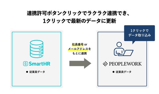 また「PeopleWork」をすでに利用しているユーザーは、これまで二重管理していた従業員データを一元化できます。これにより、手作業によるデータ入力や更新の手間を削減し、人事・労務担当者の業務負担を軽減します。さらに、シームレスな連携によって、データの正確性向上が期待できます。