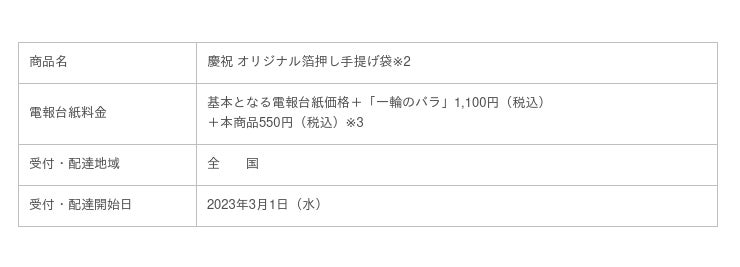 ※3 別途、電報(メッセージ)料等が必要です。詳細は以下URLにてご確認ください。