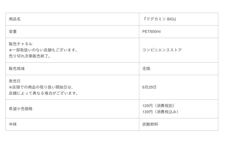 「ドデカミン」ブランドは、2004年発売以来、“ファイト バクハツ!!”をコンセプトに、エネルギッシュなエナジー炭酸飲料として男性を中心に高くご支持いただき、2020年実績は前年比102%と伸長しました。2021年1-5月もコンビニエンスストア限定の『ドデカミン BIG』や「鬼滅の刃」デザインボトルなどの展開が寄与し、前年同月比144%と好調に推移しています。「ドデカミン」は年間を通じて、引き続き話題性の高いプロモーションを展開して行きます。