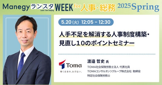 株式会社 MS-Japan(本社:東京都千代田区 代表取締役会長兼社長CEO:有本隆浩/以下 MS-Japan 証券コード:6539)が運営する管理部門と士業のためのビジネスメディア「Manegy」は、管理部門向けオンラインイベント『ManegyランスタWEEK-2025 Spring-』の開催に伴い、現在スポンサー企業様を募集しております。