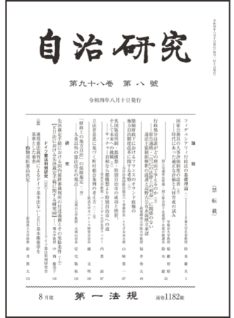 法律関連出版物、各種データベースを提供する第一法規株式会社(所在地:東京都港区、代表取締役社長:田中 英弥)は、『自治研究8月号』を7月28日に発刊しました。