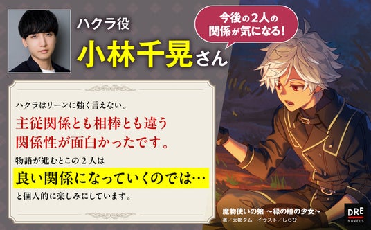 株式会社ドリコム(本社:東京都品川区、代表取締役社長:内藤裕紀)の出版・映像ブランド「ドリコムメディア」は、小説公募新人賞「第2回ドリコムメディア大賞」の《大賞》受賞作『魔物使いの娘 ~緑の瞳の少女~』を2024年12月10日(火)にDREノベルスより発売いたします。