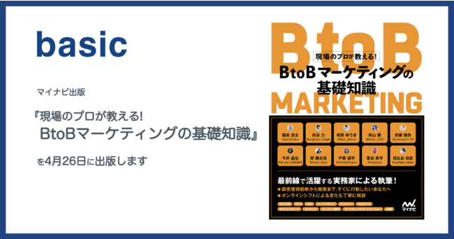 株式会社ベーシック(東京都千代田区、代表取締役:秋山勝、以下「当社」「ベーシック」)は、当社の代表取締役である秋山勝が共著した書籍『現場のプロが教える! BtoBマーケティングの基礎知識』を、マイナビ出版より2022年4月26日に出版されることをお知らせいたします。